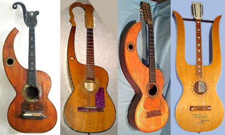 Here are new photos of the wonderful Dahlman harp guitar owned by Dave Stutzman (see Stutzman’s Harp Guitars).