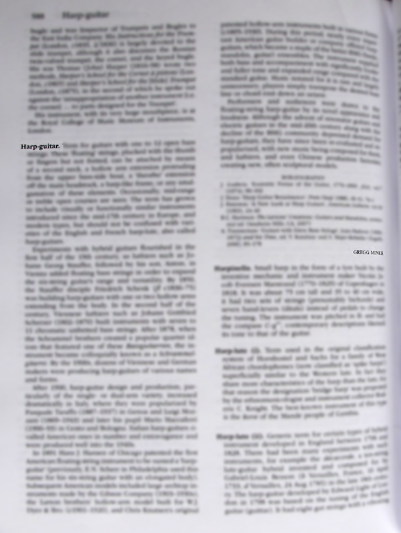 The new Grove Dictionary of Musical Instruments (Second Edition) was finally published in December and has been shipping out in the last month. It contains the first valid entry for the instrument we now know as the harp guitar, authored by yours truly. It turns out that this will be the last print edition ever to be published of the musical instrument “bible,” so we made it just under the wire!