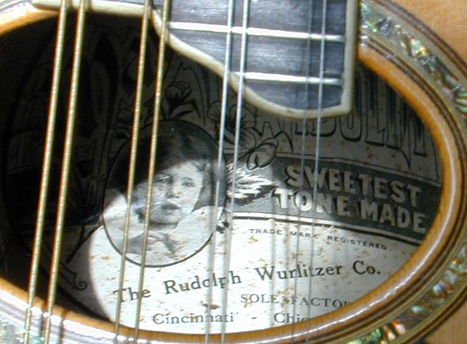The "May Flower" line of mandolins, mandolas and guitars was named after Harry Flower's daughter May. At right, from the back of the 1901 catalog, May poses with her namesake mandolin (looking like she wants to beat her father over the head with it). Provenance of May Flower instruments is hard to decipher for several reasons. One, Harry Flower put his name on a couple of different, related companies, whose history is still unclear. Two, the name was licensed to Lyon & Healy and likely others, such as the Wurlitzer company, besides being applied to Flower's own instruments built by persons or factories unknown. Three, the name has permutated into several spellings, that may or may not be related to the date, responsible company or builder. These are: |