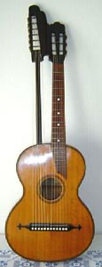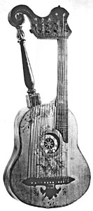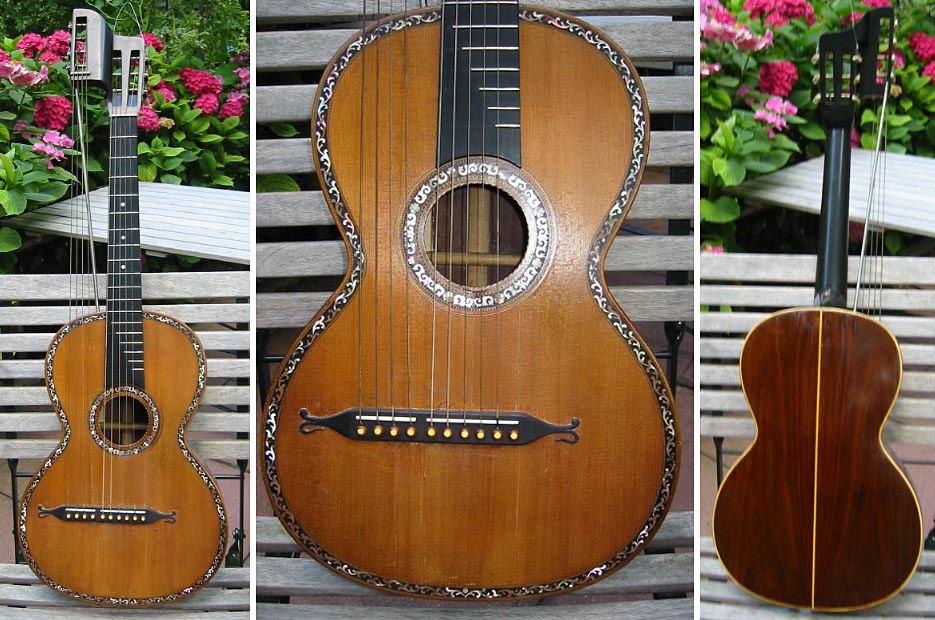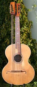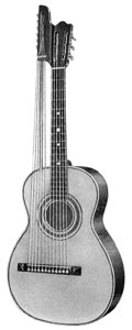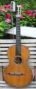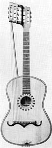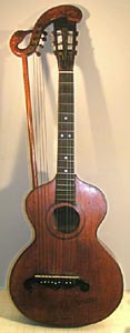 The previous "theorboed with rod support" form on the Gibsons is bordering on becoming a Form 5 ("harp frame"), as is the next instrument, and some modern instruments at bottom. |
