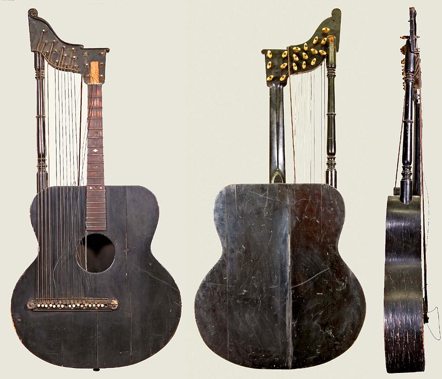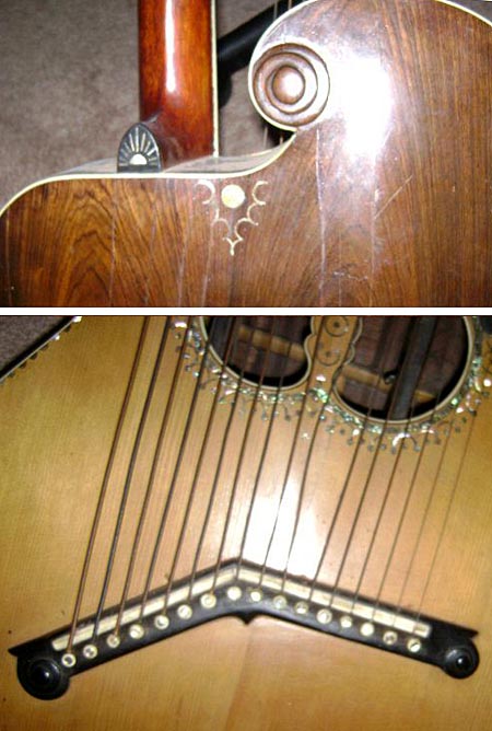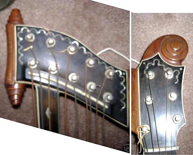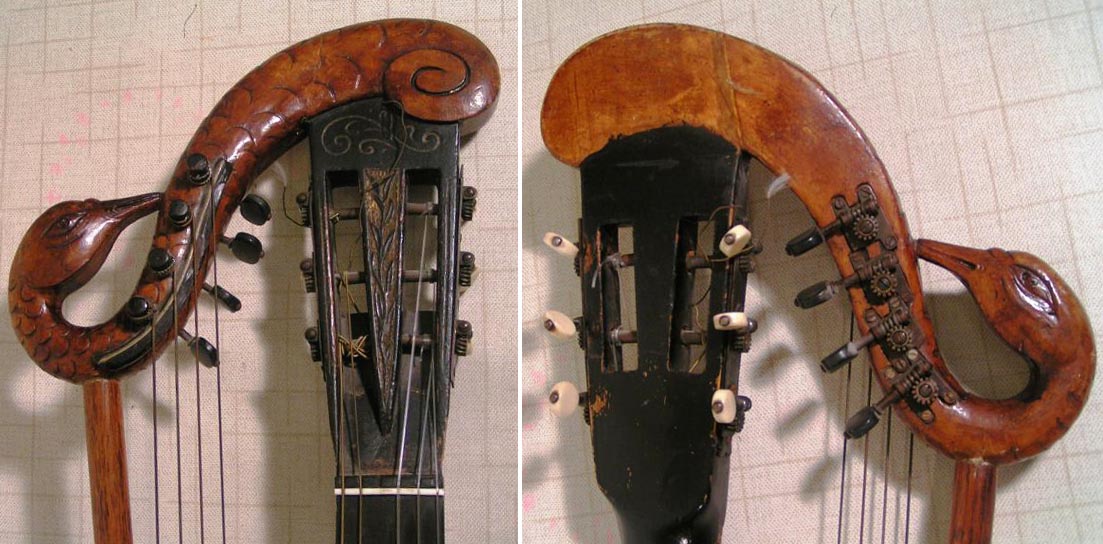 Organology Harp Guitar Form 1b Theorboed Headstock harp string attachment, NOTE TO