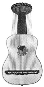 & Other Related Forms Non-family specific instruments similar or related to harp guitars. While some researchers consider some of these instruments true "harp guitars," I found it more realistic to label them organologically as "hybrids" or "one-offs." See bottom of page for image copyright information |