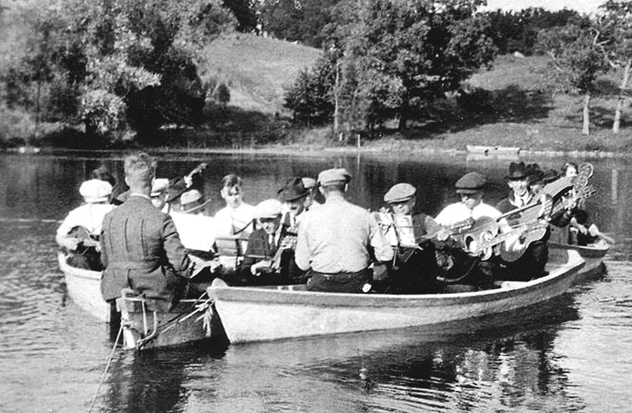 Milwaukee Bonne Amie Musical Circle again: Boating with harp guitars! copyright and courtesy John Pagenkop |