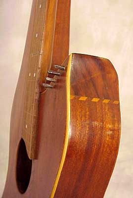 geared toward the Hawaiian players: this one has only inlaid flush frets - so