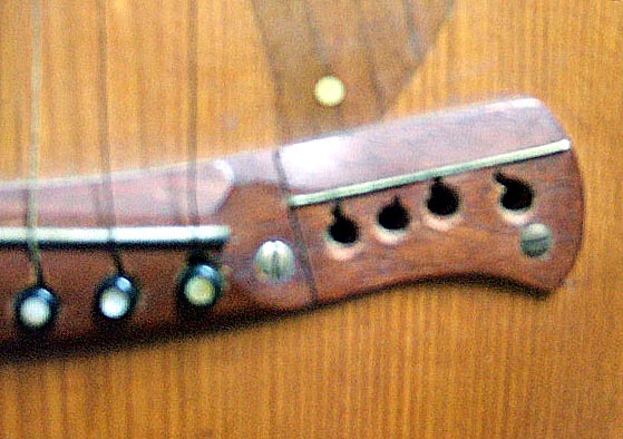 open holes in the spruce top) on opposite sides of the fretboard are exactly the