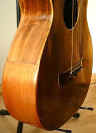 Body/neck 3" deep at nut. Straight horizontal back braces. Really old repair: lower left side replaced ages ago | |