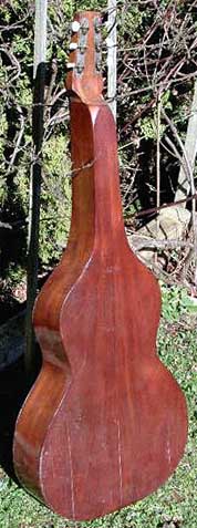 the endpin, tapering to 3" at the first fret. It has a big 4-1/4" sound hole. With the deep body and full-length hollow square neck, the guitar has the
