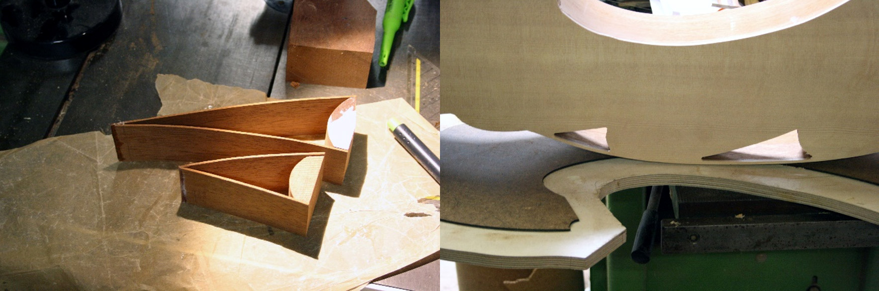 semicircular cavity at the headstock end with no glue or bolt. Like in a